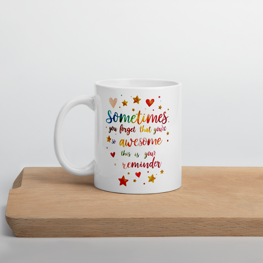 Sometimes You Forget That Your Awesome – Inspirational Coffee Cup, Motivational Gift, Positive Quote Mug (11oz, 15oz, 20oz)